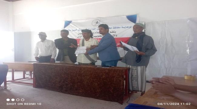 وفي ختام الدورة وزعت شهادات المشاركة للمتدربين في دورة الفنون الصحفية بمديرية أحور .