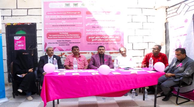 شهدت محافظة شبوة، صباح اليوم، تدشين فعاليات الشهر الوردي للتوعية بسرطان الثدي، الذي ينظمه المركز الوطني للأورام بالتعاون والتنسيق مع مؤسسة شبوة لمكافحة السرطان، وذلك في إطار الجهود الوطنية الرامية إلى رفع مستوى الوعي المجتمعي بخطورة المرض وأهمية الفحص المبكر في الوقاية منه.