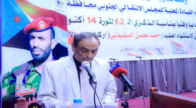من جانبه، نقل أمين عام المجلس المحلي عبدربه هشلة ناصر، تحايا محافظ المحافظة الشيخ عوض بن الوزير، مشيرًا إلى أن الاحتفاء بذكرى ثورة 14 أكتوبر يجسد قيم الوفاء والعرفان لتضحيات الأبطال الذين قدّموا أرواحهم دفاعًا عن الوطن وكرامته.