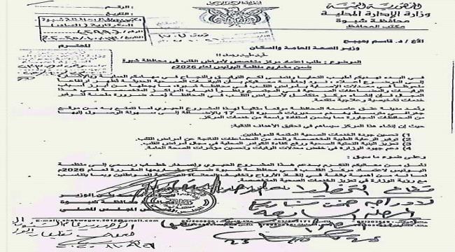 ووجّه معالي وزير الصحة، قطاع التخطيط بالوزارة بإدراج المشروع ضمن المرحلة السابعة من مشاريع التمويل الخارجي لعام 2026م، بما يعزز منظومة الخدمات الطبية في المحافظة.